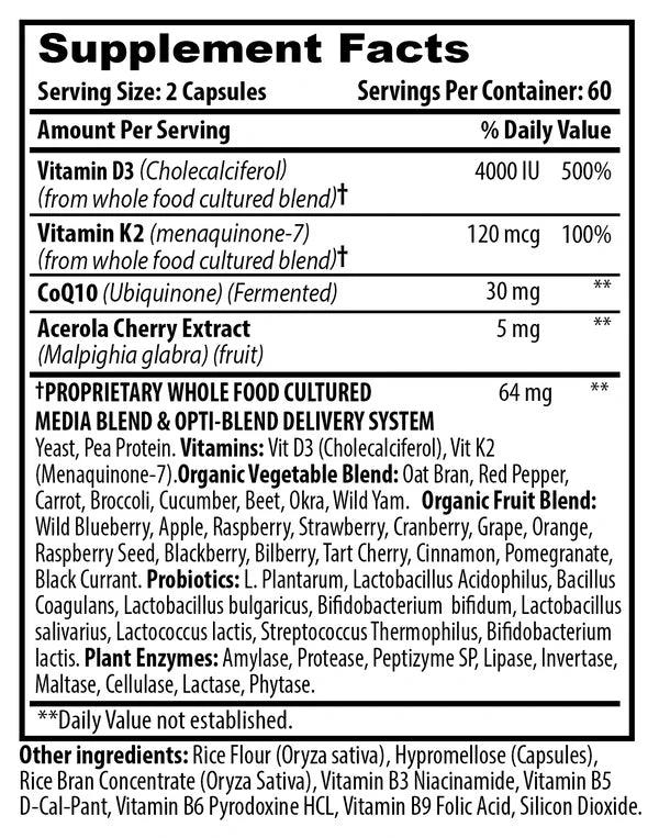 - Uses 3 ingredients that raise each others’ effectiveness (CoQ10, Vit D, and K2)